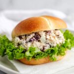 A delicious and fresh Apple Cranberry Chicken Salad combining savory cooked chicken with sweet apples, tart dried cranberries, crunchy toasted pecans, and celery, dressed in a creamy lemon-mayo dressing. Perfect for sandwiches, lettuce cups, or meal prep lunches, offering a delightful balance of flavors and textures.