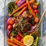 - Serve: Remove the sheet pan from the oven, top with additional chopped fresh basil, and serve the balsamic chicken and veggies warm. Enjoy!