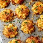 These Baked Mac and Cheese Bites are creamy, cheesy, and perfectly crispy with a crunchy panko coating on top and bottom. Made with a blend of mild cheddar, Gruyere, and fontina cheeses, these bite-sized treats are baked to golden perfection in mini muffin tins, delivering a guaranteed no-fail party appetizer or snack that’s utterly addictive and packed with flavor.