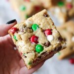 These Gooey Christmas Cookie Bars are festive blondies packed with holiday M&Ms and sprinkles. They are moist, chewy, and perfect for holiday gatherings or gift giving. Easy to make and freezer-friendly, they bake up golden with a gooey center and are sure to be a crowd-pleaser during the Christmas season.
