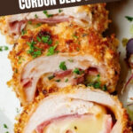 A classic and elegant Cordon Bleu Chicken recipe featuring tender chicken breasts stuffed with Black Forest ham and Swiss Gruyere cheese, coated in a crispy panko and Parmesan breadcrumb crust, baked to perfection and served with a rich Dijon cream sauce.