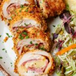 A classic and elegant Cordon Bleu Chicken recipe featuring tender chicken breasts stuffed with Black Forest ham and Swiss Gruyere cheese, coated in a crispy panko and Parmesan breadcrumb crust, baked to perfection and served with a rich Dijon cream sauce.