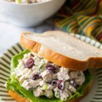 A creamy and flavorful cranberry chicken salad with crunchy walnuts, fresh dill, and a hint of orange zest, perfect for sandwiches, wraps, or as a refreshing side dish.