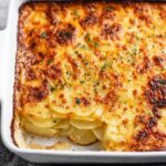 This Au Gratin Potatoes recipe features thinly sliced Yukon Gold potatoes baked in a rich, creamy cheese sauce combining cheddar, gruyere, and Parmesan. Perfect as a savory side dish for holiday dinners or special occasions, it offers a luscious texture with a golden, bubbly cheese crust.
