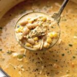 A creamy and flavorful White Chicken Chili made with shredded chicken, white beans, green chiles, corn, and a blend of aromatic spices, finished with cream cheese for a rich texture and topped with fresh cilantro, sour cream, cheese, and optional garnishes.