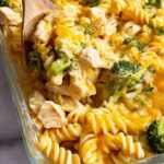 This Chicken Noodle Casserole is a comforting and hearty dish featuring rotini pasta, tender broccoli florets, shredded cooked chicken, and a creamy homemade cheese sauce. It's baked to perfection with a melted cheddar cheese topping for a satisfying family meal.
