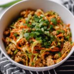 This Easy Egg Roll in a Bowl is a quick and flavorful one-dish recipe that combines lean ground chicken or turkey with crunchy broccoli slaw, fresh ginger, garlic, and a savory sauce made from coconut aminos and toasted sesame oil. It offers all the great flavors of an egg roll without the wrapper, making it a healthier and low-carb option perfect for a satisfying dinner.