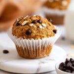 Delight in these moist, fluffy Gluten Free Pumpkin Chocolate Chip Muffins, bursting with warm spices, rich pumpkin flavor, and melty chocolate chips in every bite. Perfect as a comforting breakfast or snack, they combine wholesome gluten-free flours and oats with natural sweetness from maple syrup and fresh pumpkin puree.