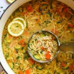 Lemon Chicken Orzo Soup is a cozy, one-pot meal featuring tender chicken thighs, vibrant lemony broth, tender orzo pasta, and fresh vegetables like carrots, celery, and zucchini. Enhanced with fresh dill and Parmesan, this soup is bright, flavorful, and perfect for a healthy and comforting meal.