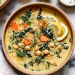 Lemony Greek Chickpea Soup is a vibrant and protein-packed vegetarian soup inspired by traditional Avgolemono. Featuring tender chickpeas, orzo pasta, fresh kale, and a luscious lemon-egg broth, this fragrant soup is a comforting and nutritious meal ready in just 35 minutes.