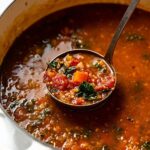 A hearty and healthy Mediterranean Lentil Soup packed with vibrant flavors from fire-roasted tomatoes, aromatic spices, and fresh kale. This vegetarian soup is perfect for cozy meals during fall and winter, offering plant-based protein and a creamy texture option.