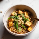 - Garnish and serve: Transfer the sesame ramen noodles and tofu to serving bowls. Sprinkle with crushed peanuts, sesame seeds, and thinly sliced green onions. Serve immediately and enjoy.