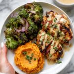 This Sheet Pan Chicken Thighs with Broccoli recipe offers a flavorful and balanced weeknight dinner that comes together quickly using simple, wholesome ingredients. The chicken thighs are seasoned with a smoky chipotle rub and baked alongside tender-crisp broccoli and red onions. Served with a tangy honey-mustard sauce, this one-pan meal delivers satisfying taste and easy cleanup.