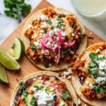 This Sheet Pan Chicken Tostadas recipe is a quick and easy weeknight dinner featuring crispy street taco-size tortillas topped with seasoned shredded chicken, a flavorful bean mixture, and melted cheese. Perfectly customizable with your favorite toppings like lettuce, tomatoes, avocado, and jalapenos, these tostadas are sure to be a family favorite.