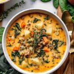 This rich and creamy Sausage Potato Soup features spicy Italian sausage, tender red or yellow potatoes, carrots, and nutritious spinach. A hearty, flavorful meal that comes together in under an hour, perfect for comforting dinners.