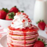 - Serve: Serve pancakes hot, topped with whipped cream, fresh strawberries, and maple or strawberry syrup for a delicious breakfast treat.