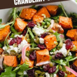 While I haven’t had great luck freezing the entire salad (greens wilt and cranberries get mushy), you can freeze the roasted sweet potatoes on their own. Just roast, cool completely, spread on a baking sheet, freeze until firm, then transfer to a freezer bag. Thaw and reheat before mixing into a fresh salad.