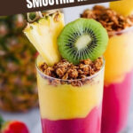For special mornings or weekend brunches, I serve this Tropical Fruit Breakfast Smoothie Recipe in mason jars layered with chia pudding or granola at the bottom. It’s fun to dig into and looks impressive with a paper straw and a pineapple slice on the rim!