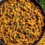 - Garnish and serve: Garnish with freshly chopped parsley leaves if desired and serve immediately. Enjoy your comforting vegan cheeseburger pasta!