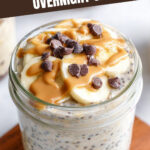 A creamy and delicious vegan and gluten-free overnight oats recipe featuring peanut butter, banana, shredded coconut, and a touch of chocolate for a perfect make-ahead breakfast.
